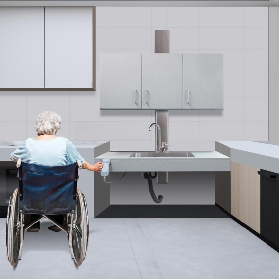 The Compact Smart Lift sytem is designed for small kitchens or single-module setups, enabling effortless adjustment of cabinets and countertops. It enhances comfort, safety, and accessibility, making daily cooking easier for seniors, wheelchair users, and families in compact living spaces.