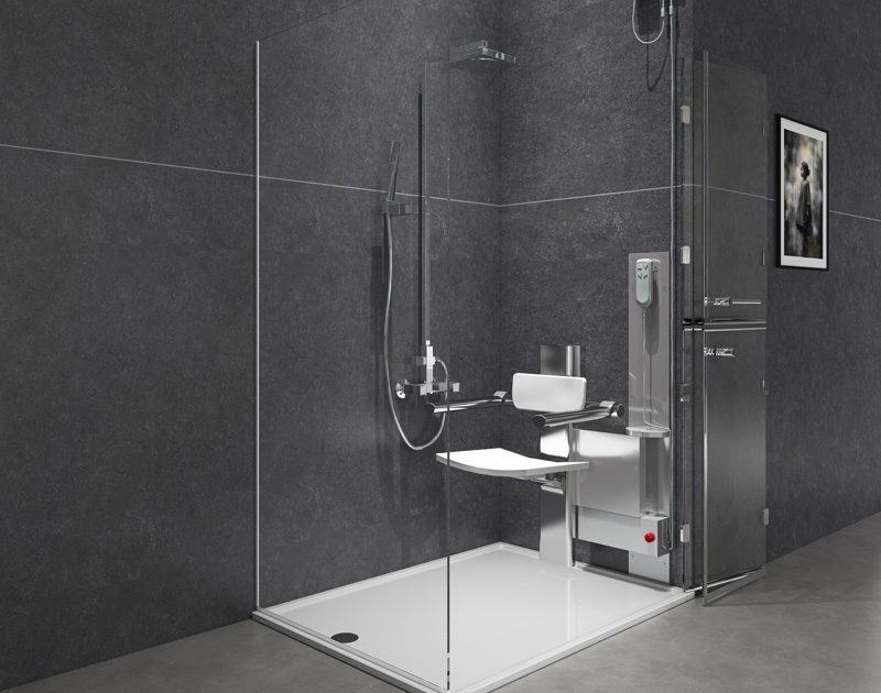 This electric height-adjustable rotating shower chair is designed for safety and convenience. Its optimized size fits in most shower rooms, with options for left or right installation. The chair offers height adjustment, rotation, and foldable storage, making it easy for the whole family to use.