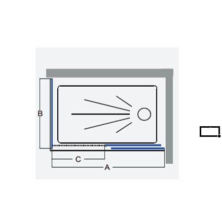 Rectagular shower doors installed in wall corner. Front part is one sldiing door and one fixed panel . Plus the side fixed panel to make rectangular shape.